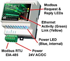 • Supports Modbus coils, discrete inputs, input registers, holding registers