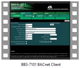 Screen shot from BB3-7101-SP BACnet IP Gateway