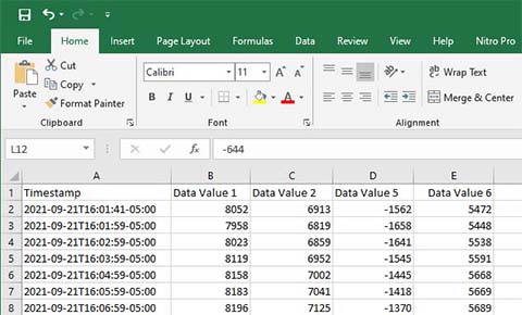 Data is automatically timestamped. You may open your data file with any standard spread sheet program or any other tool that can read a simple CSV file. There will be one column of data per each point you selected for logging.